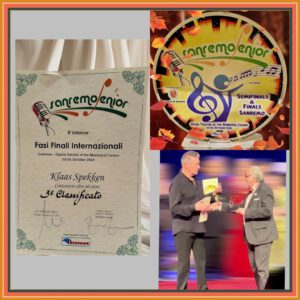 Vrijdagavond keek ik online mee naar de deelname van Klaas Spekken. Hij deed mee aan het San Remo Senior Festival dat plaatsvond in het Opera Theater van het Gemeentelijk Casino San Remo.