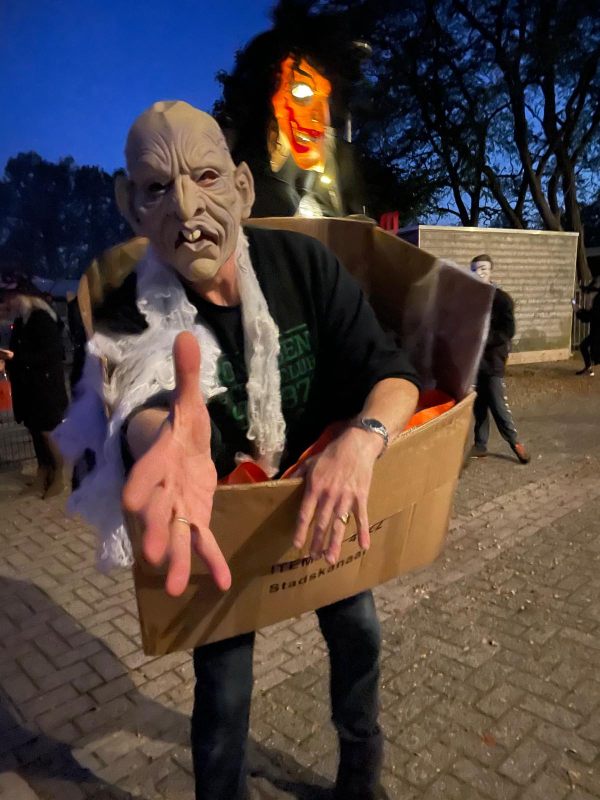 Honderden mensen liepen de route door het dorp met af en toe griezelige taferelen. Ik sprak enkele mensen en het was opvallend dat een aantal van de deelnemers uit andere dorpen/gemeenten kwam om speciaal hieraan mee te doen. Het bleef niet zo heel lang griezelen in het dorp, want na de optocht werden alle versieringen in bomen en aan panden direct heel vakkundig door de jongeren opgeruimd. Ook dat verdient een compliment!
