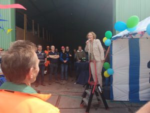 Donderdagmiddag was het tijd voor een heel klein feestje bij Wedeka in Ter Apel. De huisvesting in Ter Apel is letterlijk ‘op de schop’ gegaan. In Ter Apel had Wedeka twee panden in eigendom en ook werd er nog een pand gehuurd. Eén van de panden is verkocht en het andere pand aan de Drenthweg in Ter Apel wordt helemaal verbouwd en dat gebouw zal binnenkort dat de centrale plek in Ter Apel worden voor de medewerkers.