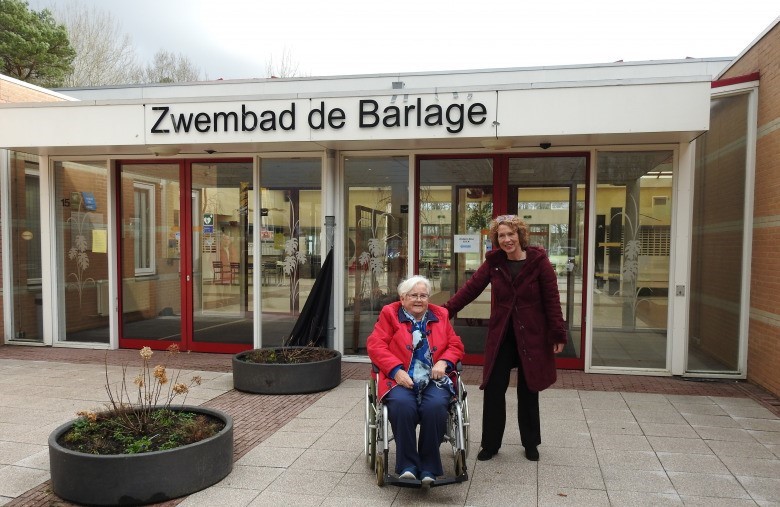 Toen de gemeente Westerwolde op 31 december 2022 eigenaar werd van het overdekte zwembad in Vlagtwedde, koos het college ervoor de oorspronkelijke naam van het voormalige natuurbad te herstellen. Ook het overdekte zwembad kreeg de naam ‘De Barlage’. Ik vroeg Trijnie of zij samen met mij de onthulling van de naam wilde doen. De blijdschap en emotie die zij voelde bij de terugkeer van de naam ‘Zwembad De Barlage’ was groot. De foto die toen werd gemaakt koester ik.