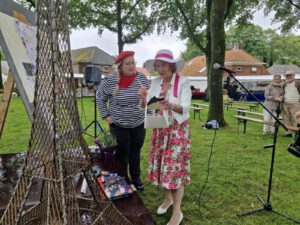 Ondanks dat ook zaterdag in Westerwolde de regen af en toe met bakken uit te lucht kwam vallen kon ik toch het schilderfestival Montmartre (in gepaste outfit) openen.