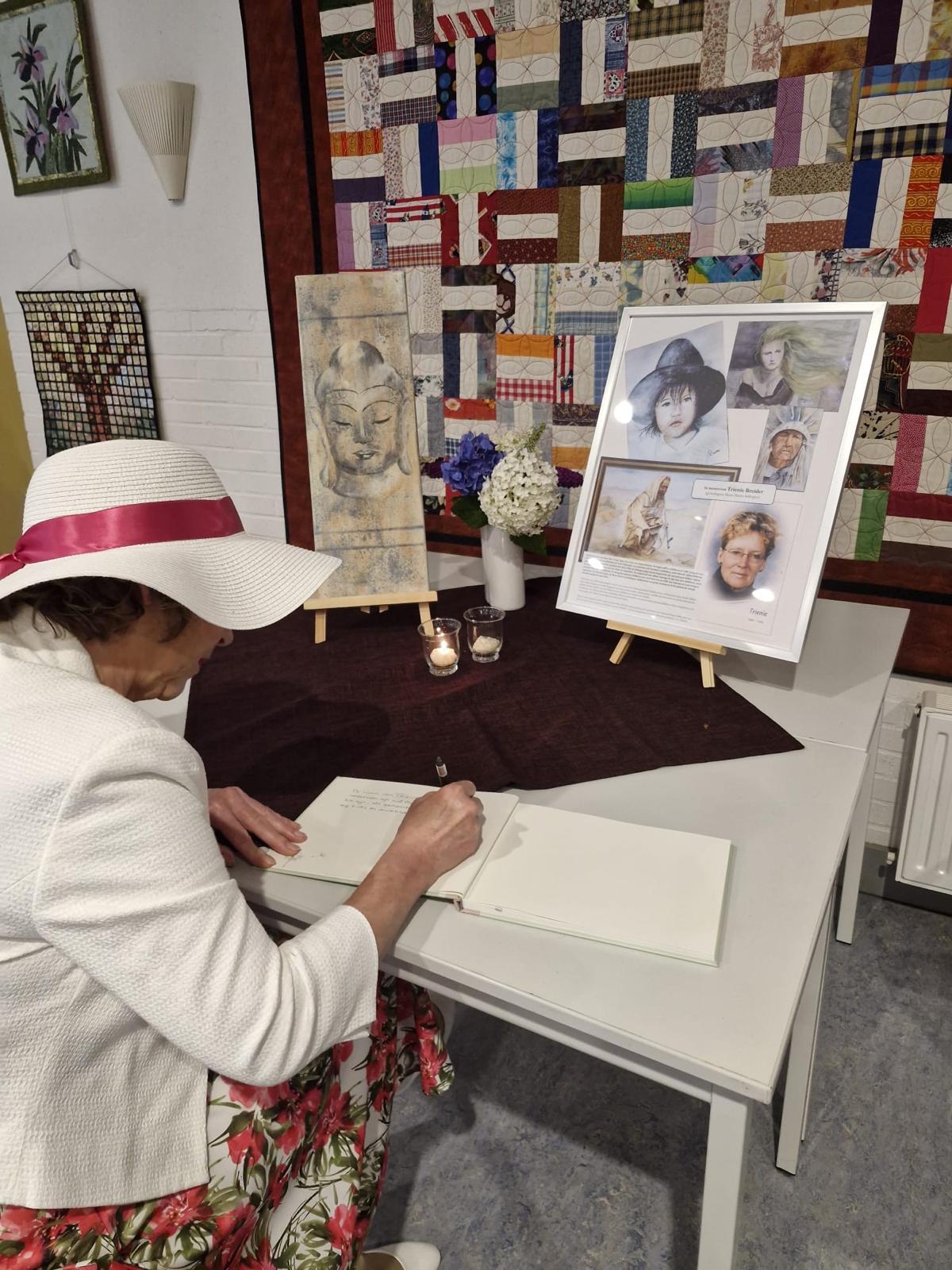 Tijdens de opening stonden we ook even stil bij het recentelijke overlijden van de ‘Moeder van Montmartre’, Trienie Breider. Trienie stond in 1991 aan de wieg van Montmartre en mede dankzij haar is dit een evenement geworden in Westerwolde dat niet alleen regionaal bekend is maar Sellingen als kunstdorp ook landelijk op de kaart heeft gezet. Vandaag kon iedereen die dat wilde even stilstaan bij haar overlijden en een ‘in memoriam’ schrijven dan wel steun betuigen aan de familie. Ik heb graag van die gelegenheid gebruik gemaakt.