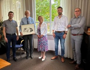 Bij een afscheid hoort een cadeau en dat kreeg hij dan ook van het college. (Helaas waren niet alle collegeleden aanwezig afgelopen dinsdag.) Nu hij weer iets meer tijd krijgt is er wellicht ruimte om de mooie landschapsbiografie van Westerwolde te lezen. De zeefdruk van Het Klooster Ter Apel zal ook vast een mooie plek krijgen in huize Klaassen! Nogmaals dank voor alles Leendert!